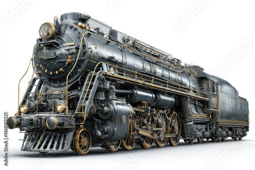 © Rincon Studio, Naklejka premium Steam Locomotive with Golden Accents A Detailed and Classic Railway Engine for Transportation
