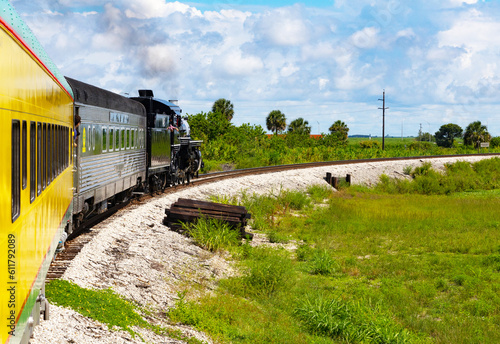 © Steve Samoyedny, Obraz premium Steam train going around a bend