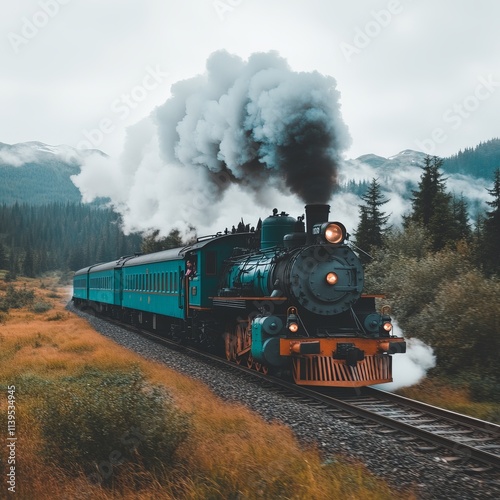 © Big9869, Obraz premium Steam Train Journey Through Majestic Mountain Scenery