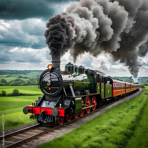 Obraz premium Steam Train Rolling Through Countryside