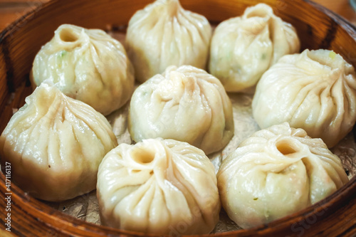 © 35mm, Obraz premium steamed dumplings in wooden basket