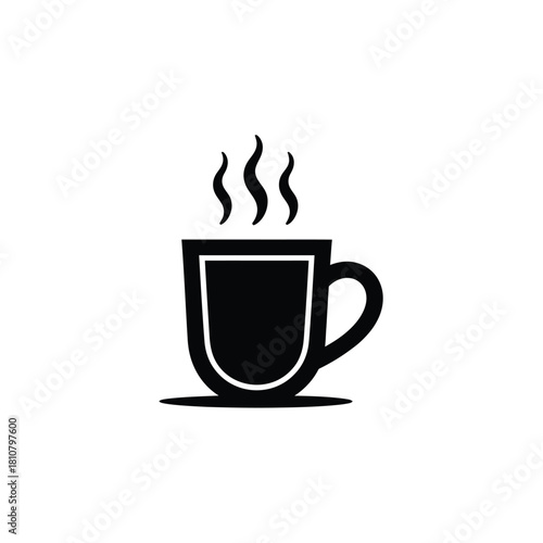 © Engineer Jahid, Obraz premium Steaming Coffee Cup Icon Black Silhouette of Hot Beverage with Handle and Aroma