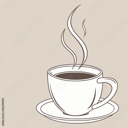 © Salman, Obraz premium Steaming Coffee Cup Line Art: Simple Vector Graphic for Creative Projects.