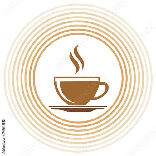 Obraz premium Steaming Coffee Cup on Saucer with Gradient Circle Pattern Graphic