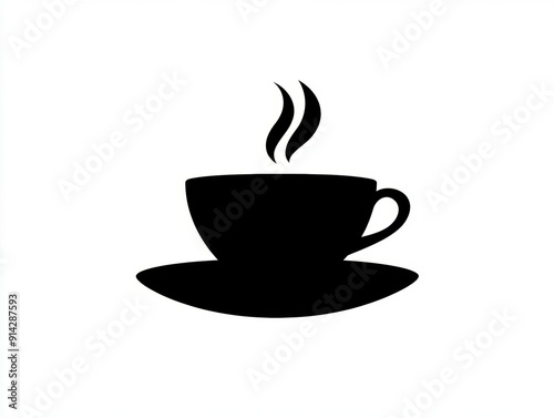 © Viam, Fototapeta premium Steaming coffee cup silhouette on white background