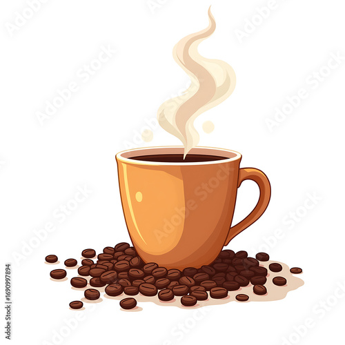 Obraz premium Steaming Coffee Cup with Coffee Beans