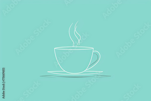 © alexandr, Obraz premium Steaming cup line art on teal background