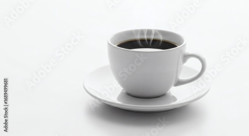 Obraz premium Steaming cup of coffee on clean, minimalist white background