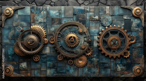 © Wasin Arsasoi, Fototapeta premium Steampunk art with gears and machinery.