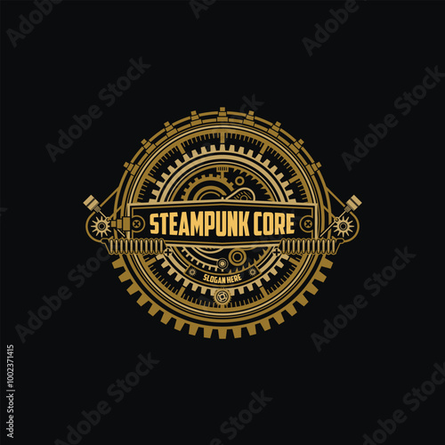 © Deni, Fototapeta premium Steampunk badge logo with vintage gear circle