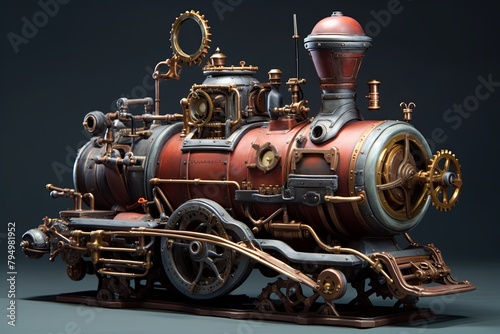 © Michael, Fototapeta premium Steampunk Clockwork Designs: Exploring Steam Engine Prototypes in Intricate Creations