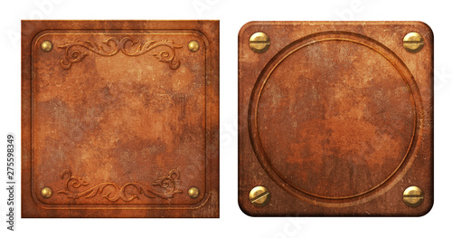 Fototapeta premium Steampunk copper aged metal plates - illustration