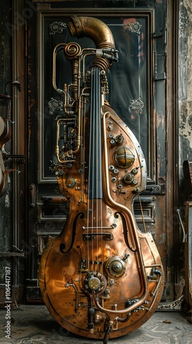 © Infinity, Naklejka premium Steampunk Double Bass: A Futuristic and Artistic Masterpiece