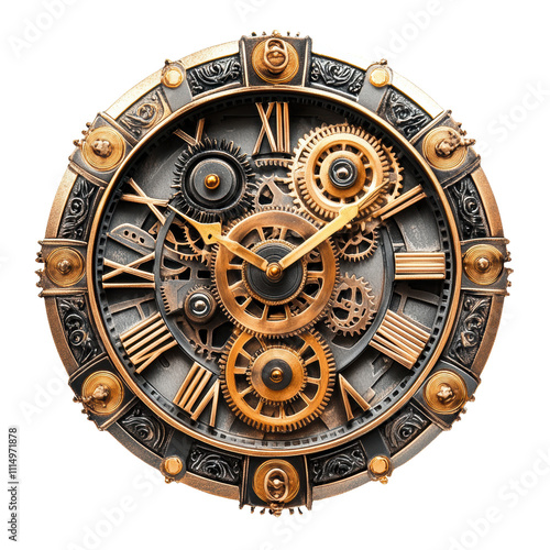 © Napa, Obraz premium Steampunk Gear Clock: A Timeless Masterpiece on white background