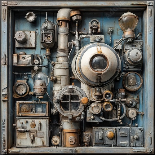 Fototapeta premium Steampunk Machine: A Detailed Artwork of Intricate Mechanisms