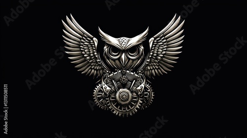 Obraz premium Steampunk owl emblem on dark background. Possible use for a graphic design or product logo