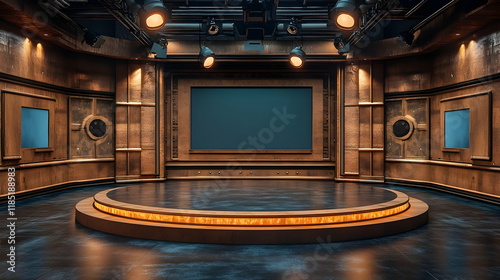 Obraz premium Steampunk stage, studio, presentation, backdrop, lights