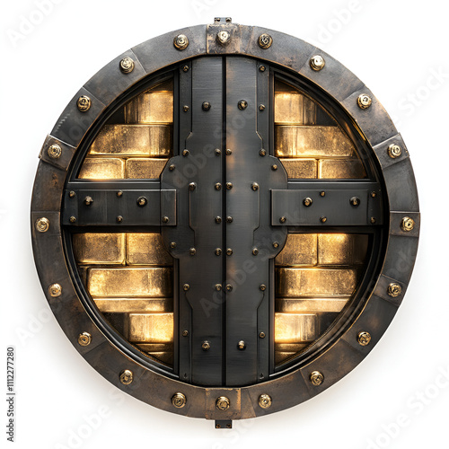 © thanit, Naklejka premium Steampunk-style decorative shield urban art installation industrial aesthetic gallery display close-up perspective unique design concepts