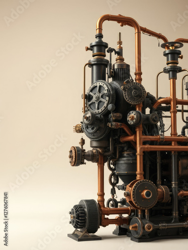 Fototapeta premium Steampunk-style gear system with copper pipes and valves, gear system, pipe,...