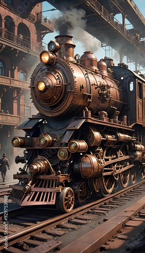 © Shehroze, Naklejka premium Steampunk Train with Intricate Design and Lighting