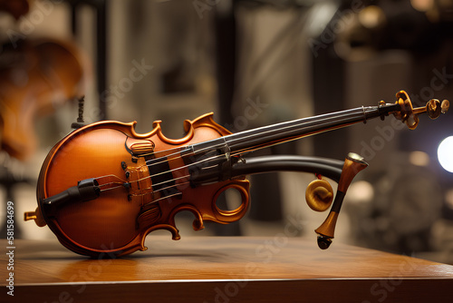 © Michal, Fototapeta premium Steampunk violin sitting on a table