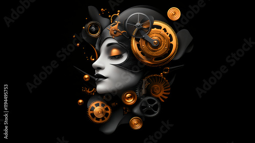 © Priyanut, Fototapeta premium Steampunk Woman - Futuristic Portrait