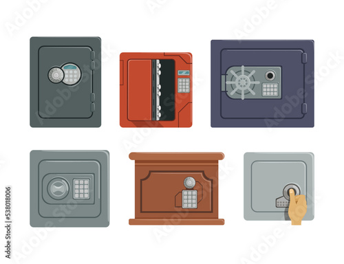 © topvectors, Fototapeta premium Steel and Metal Safe or Strongbox as Secure Lockable Box for Saving Valuable Object Vector Set