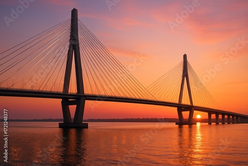 © TishinaHorizon, Fototapeta premium Steel arch bridge over river