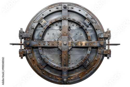 Fototapeta premium Steel bank vault door for safe storage isolated on transparent background