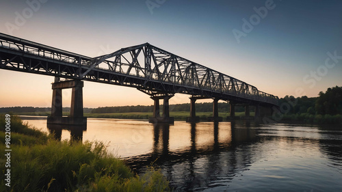 © Arceli, Fototapeta premium Steel bridge stretching across river background