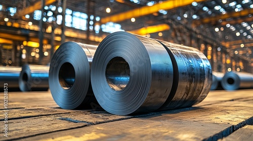 © kayudamar, Obraz premium Steel Coils in a Factory Setting