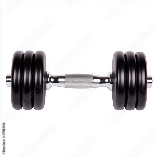 © 효섭 이, Naklejka premium Steel dumbbell and weights on white background. Sports bodybuilding equipment. Fitness, sport or healthy lifestyle concept.