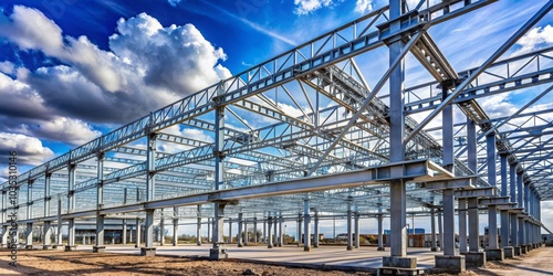 Fototapeta premium Steel Frame Construction Under a Cloudy Sky, construction, architecture, building