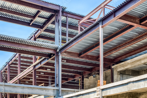 Fototapeta premium Steel frame structure building construction site