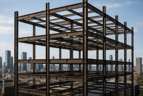 Fototapeta premium Steel Frame Structure Overlooking Urban Skyline