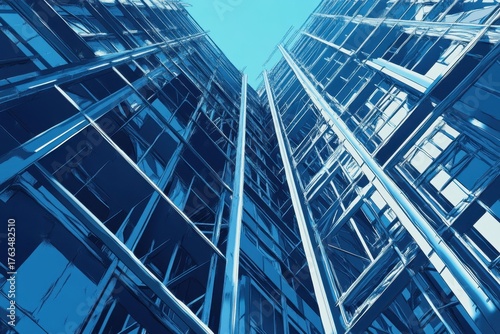 Fototapeta premium Steel framework of a skyscraper under construction urban cityscape architectural photography bright blue sky low angle view modern infrastructure