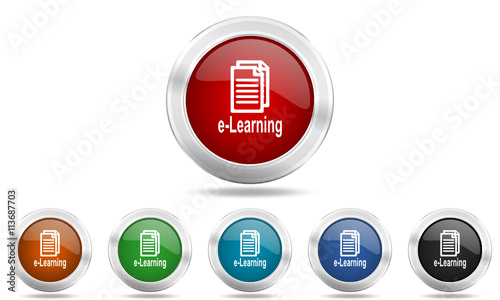 Fototapeta premium Steel glossy round colored web vector icon set