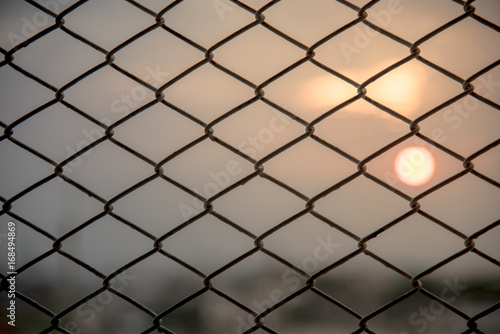 © theeraphong, Fototapeta premium Steel grating sunset background.