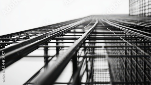 © AriyaniAI, Fototapeta premium Steel Grid Structure Reaching Upwards