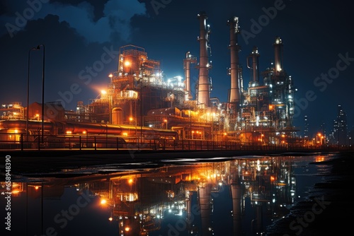 © Lubos Chlubny, Fototapeta premium Steel long pipes in crude oil factory. Oil refinery