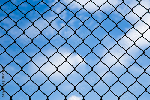 © neosiam, Fototapeta premium Steel mesh against blue sky background