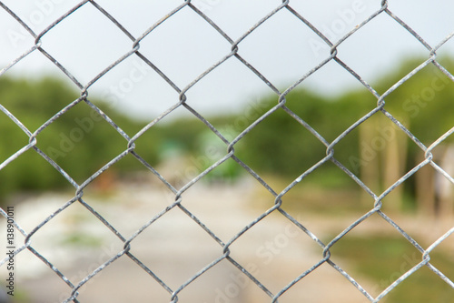 Fototapeta premium Steel mesh fence on outdoor