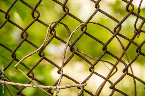 Fototapeta premium steel mesh, rusty iron mesh braided dry grass on a background of