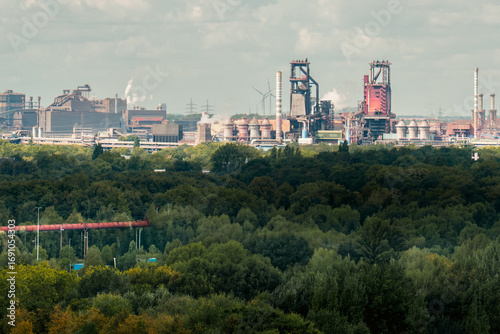 © Jakub, Fototapeta premium Steel Plant Landscape Industrial Skyline Forest Contrast