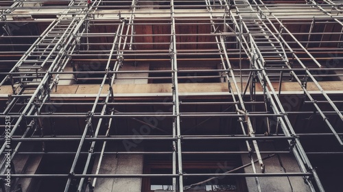 Obraz premium Steel Scaffolding Structure on Building Exterior