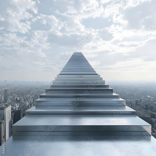 Obraz premium Steel Steps Leading Towards Bright Urban Skyline with Ambition Symbol