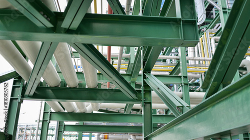 Fototapeta premium steel structure frame with pipelines, industrial support frame, factory pipe...