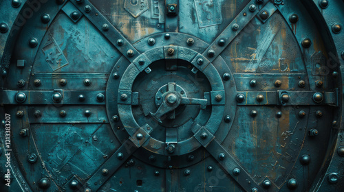 Naklejka premium Steel Vault Door: A security door made of reinforced steel, typically found in banks or military sites, providing unparalleled protection and secure access to valuable assets.