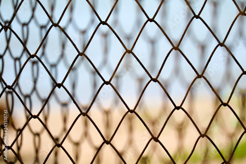 Fototapeta premium Steel wire fence to prevent dangerous areas along the beach