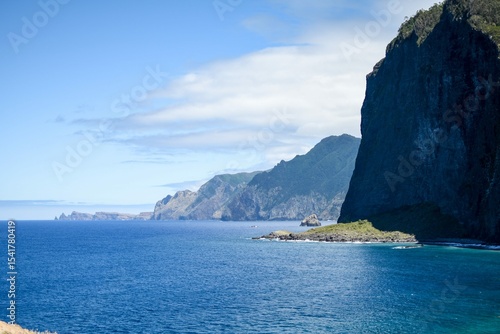 © oscar, Naklejka premium Steep ocean cliffs and coastal mountains under blue sky